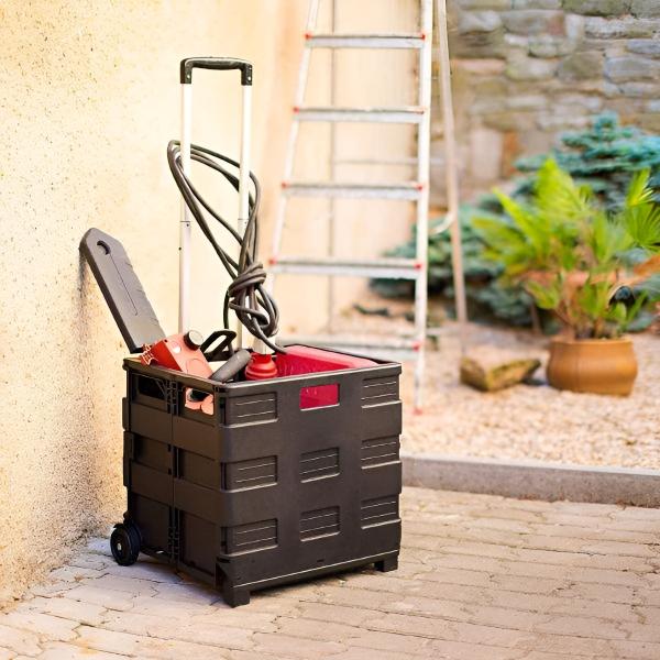 Šis vežimėlis išsprendžia nepatogumus, susijusius su sunkių daiktų gabenimu.