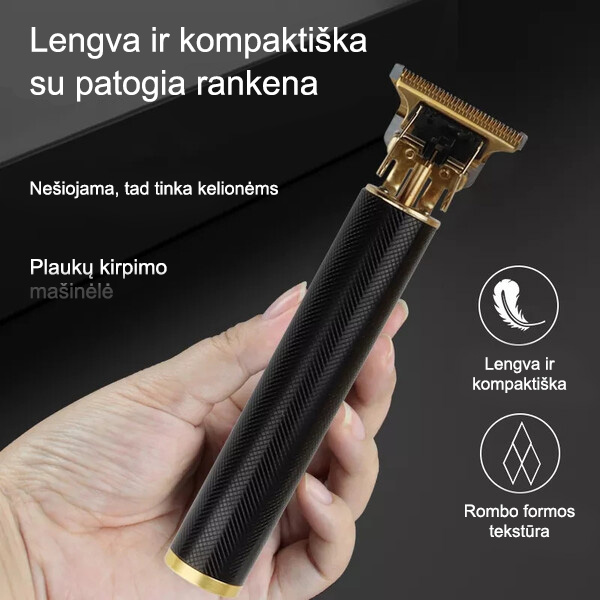 Maža kirpimo galvutė ir USB įkrovimas, kad būtų galima be vargo prižiūrėti ir nešiotis.