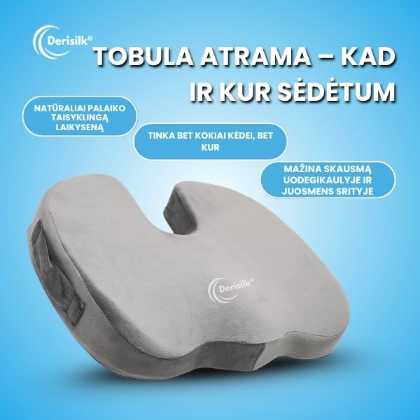 Pasiimkite ją su savimi, kad ir kur eitumėte, ir naudokite biure, namuose ar automobilyje, užtikrindami nuolatinį komfortą sėdėjimo akimirkomis!