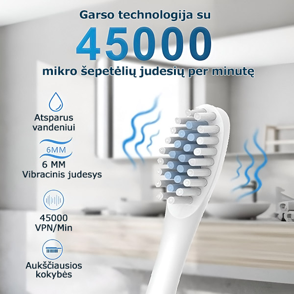 🦷 42 000 judesių per minutę užtikrina gilų valymą ir pašalina iki 8 kartų daugiau apnašų.