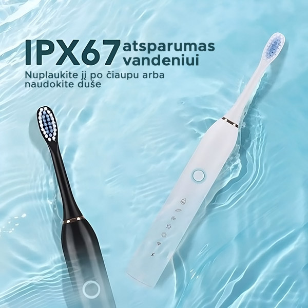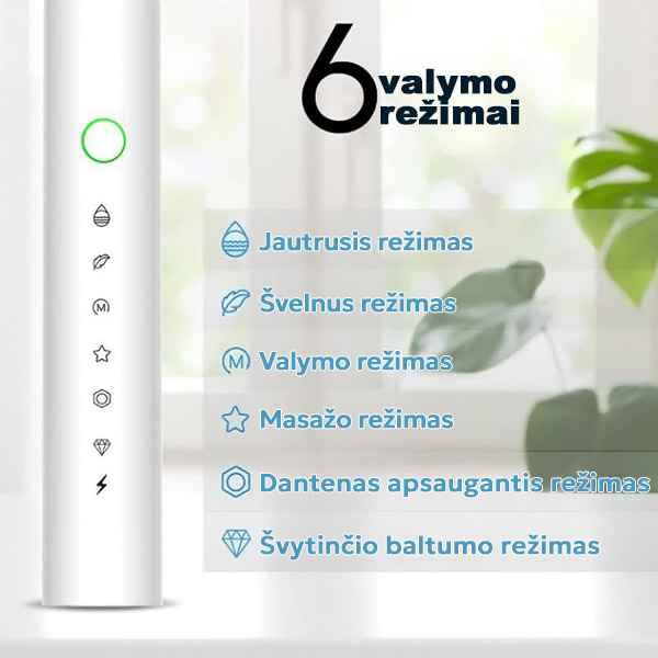 🦷 6 režimai ir IPX7 atsparumas vandeniui – jūsų dantų priežiūros rutina ką tik tapo lengvesnė ir efektyvesnė!