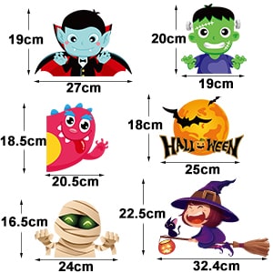- Dydis: Helovino langų lipdukai, kuriuos sudaro 10 lipdukų, kiekvienas 21 x 29,5 cm