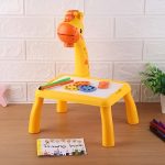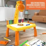 Spalvingas žirafos tematikos projektorius, sukurtas patraukti vaikų dėmesį ir suteikti smagumo, skatinantis motorinių bei pažintinių gebėjimų vystymąsi.
