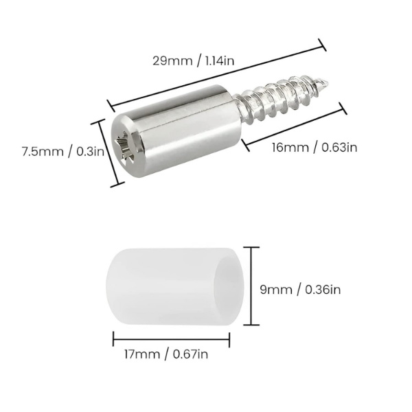 Matmenys: Varžtas: 24 x 7 x 12 mm, Silikoninis dangtelis: 15 x 9 mm
