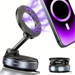 MAGHOLDZ telefono laikiklis naudoja galingą vakuuminį sukibimą, kuris sustiprėja nuo vibracijų, todėl telefonas tvirtai laikosi ant lygių paviršių ir nepalieka žymių ant stiklo, prietaisų skydelio ar stalo.