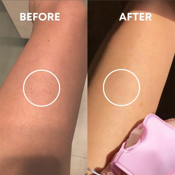 Tiesiog sudrėkinkite pirštinę ir pradėkite šveisti, kad atskleistumėte švelnią ir švytinčią odą.