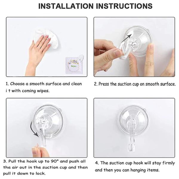 Šie tvirti kabliukai gali tvirtai laikytis ant langų, veidrodžių, stiklo, metalo, plytelių, plastiko ir įvairių kitų lygių, plokščių paviršių.
