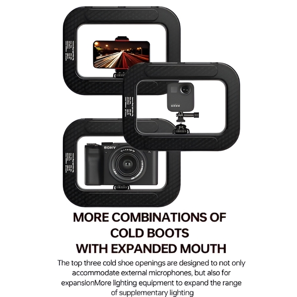 Abiejose pusėse yra varžtų angos, leidžiančios lanksčiai pasirinkti padėtį bet kurioje filmavimo situacijoje.