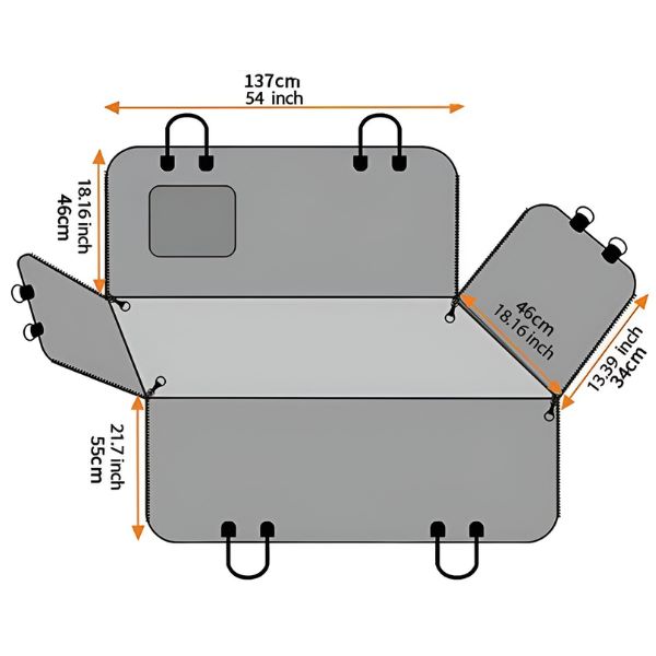 Ypatingos savybės: Sulankstomas dizainas, atsparus vandeniui, saugos diržų angos, atsparus nagams, durų apsauga