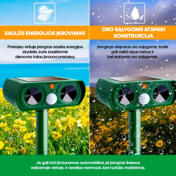Tiesiog įkiškite į žemę ir įjunkite, kad iškart gautumėte paprastą ir efektyvią kenkėjų apsaugą.