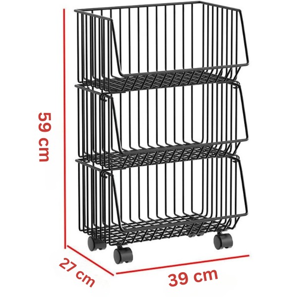 1 x CARTSTACK vežimėlis su trimis krepšeliais